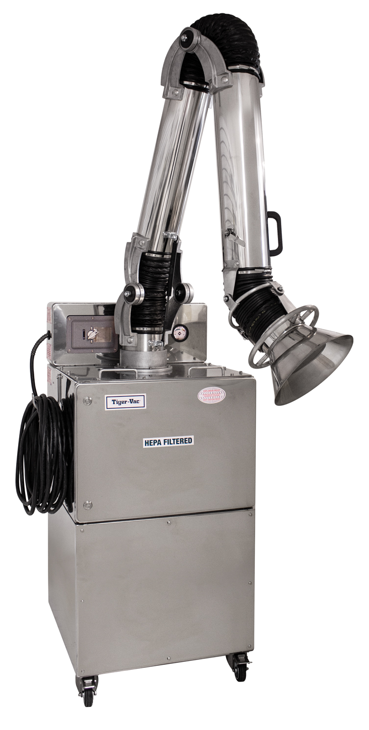 The Tiger-Vac CD-595 EX HEPA STAINLESS STEEL Dust Collector features a primary HEPA Filter that is 24" x 24" x 12" HEPA that is 99.99% at 0.3 micron efficient, and is aerosol leak tested before leaving the facility.